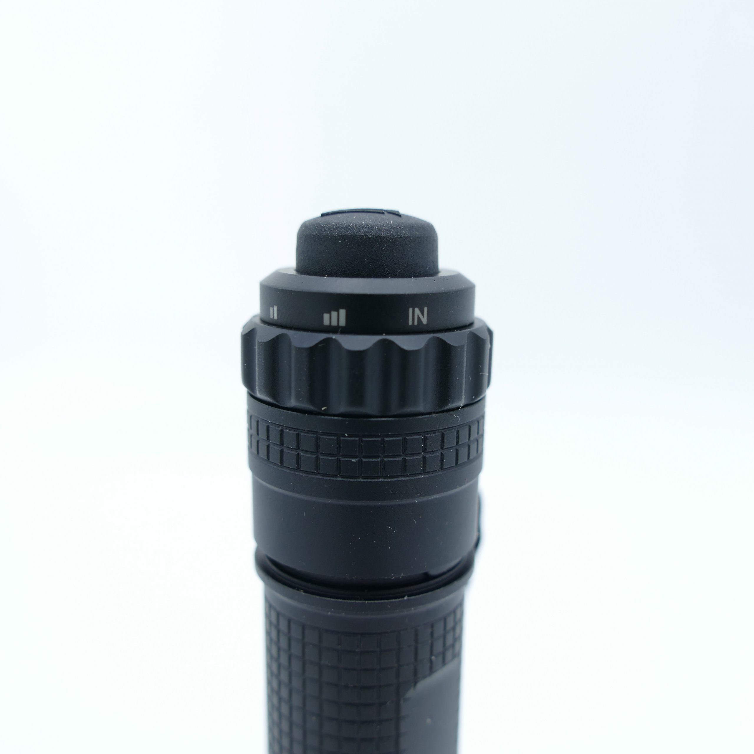 Neben dem Taktischen Heckschalter hat die NEXTORCH TA30 OPERATOR noch einen patentierten Ringschalter (Patent-Nr.: CN201621489195.1), der einmal zur Vorwahl der maximalen Leuchtstärke ( 300 oder 1300 Lumen) des Taktischen Heckschalters eingesetzt werden kann, oder die Dauerlicht- und Dimm-Funktion liefert. Über diesen Drehschalter kann man die TA30 OPERATOR hervorragend beispielsweise als Leselampe bei Ausweiskontrollen einsetzen Auch bei eingeschalteten, gedimmten Leselicht kann man über den Taktischen Heckschalter die volle Leuchtstärke mit 1300 ANSI-Lumen*, oder dem Stroboskopblitz jederzeit sofort aktivieren!