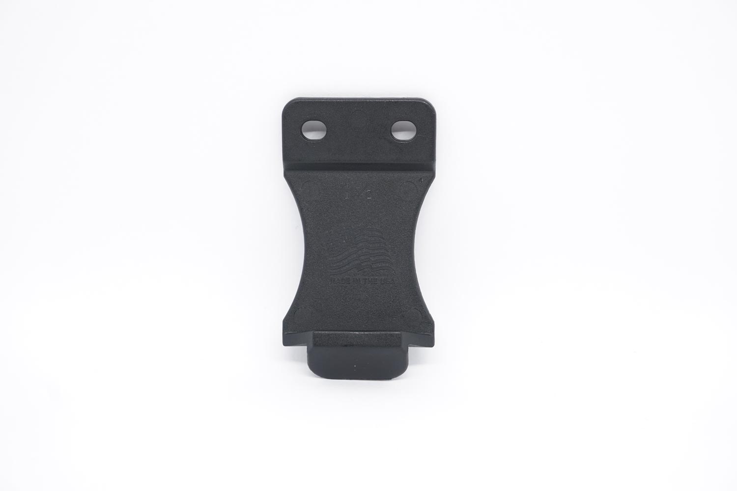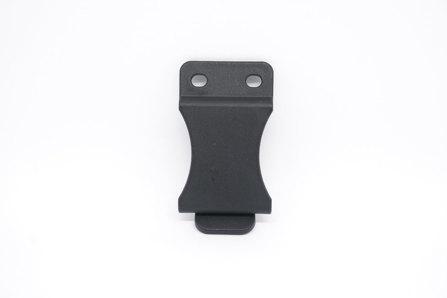 Der FOMI Clip ist perfekt zur Verwendung an Holstern oder Messerscheiden geeignet. Er greift über den Gürtel und hält sich, durch seine spezielle Form, am Gürtel fest.